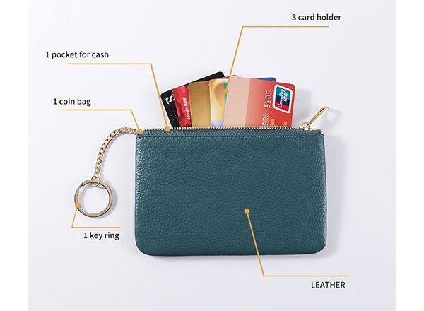 ShortDesc:Product NO:61006Msize:15.5*9*1 cmColour:yellow/ blue/ green(Accept Customized)Material:cow leather (Accept Customized)Function:1 key chain/ 1 zipper bags/ 3 cardsOriginal:Guangzhou,China