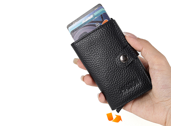 Pop Up Metal Aluminum Rfid Blocking Leather Credit Card Holder