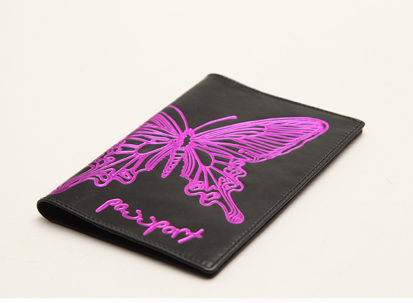 HASSION passport without logo and lining emboss purple butterfly in outside leather