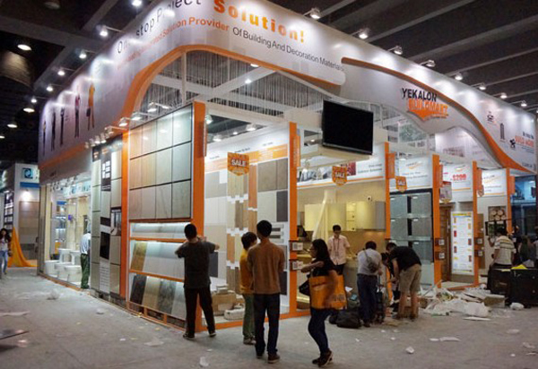Exhibitors arrange displays at the China Import and Export Fair, known as the Canton Fair, in Guangzhou, Guangdong province, on Monday. The spring session of the fair opens Tuesday. ZOU ZHONGPIN/CHINA DAILY